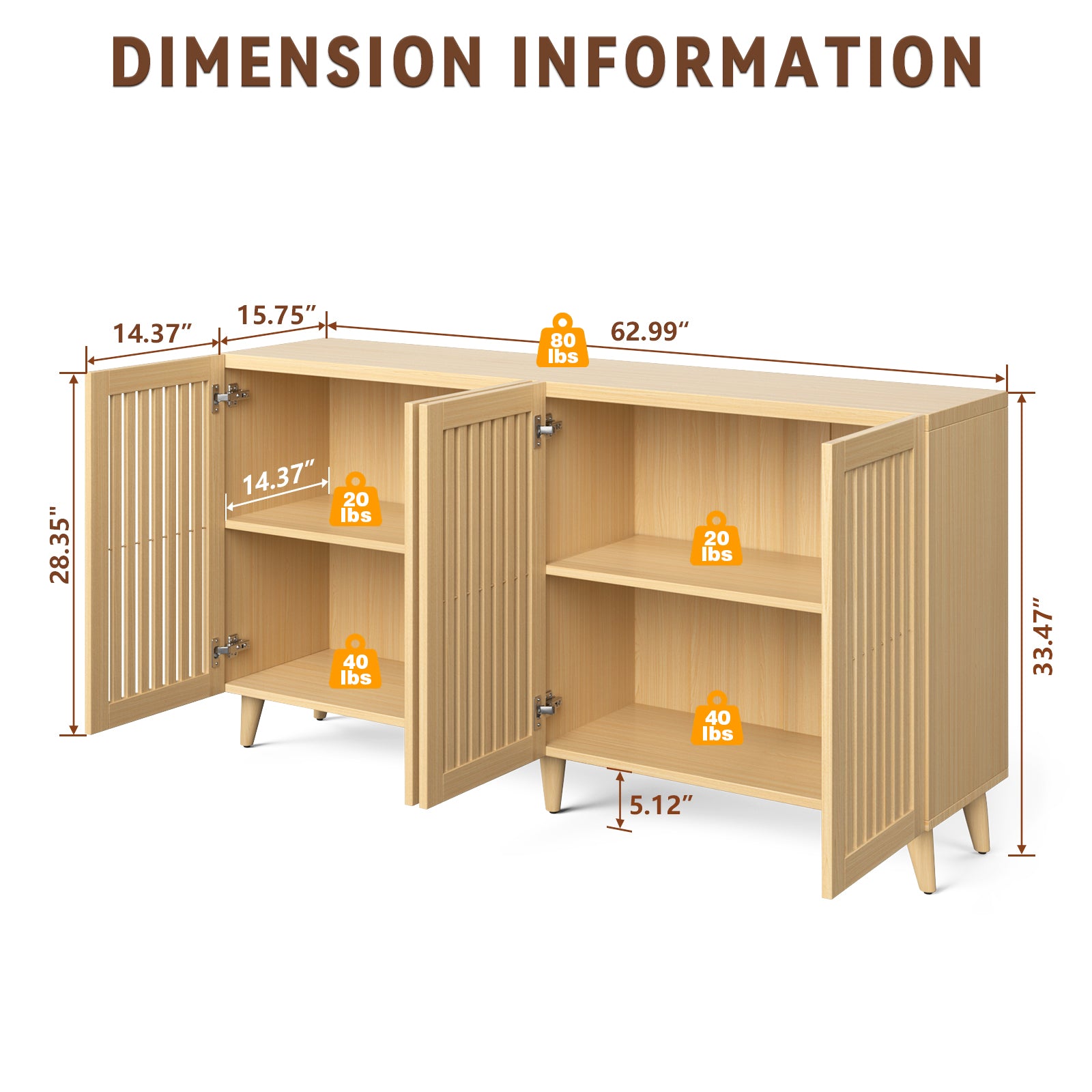 Elevate your home with this stylish Oxford groove sideboard cabinet, combining elegant design with practical storage solutions. Featuring a distinctive wave-pattern door, this buffet cabinet becomes a focal point in any room. With adjustable shelves and versatile functionality, it works seamlessly as a dining cabinet, entryway console, TV stand, or coffee bar. Built with reinforced steel legs and an anti-tip device, it ensures both stability and safety for your family while enhancing your living space.