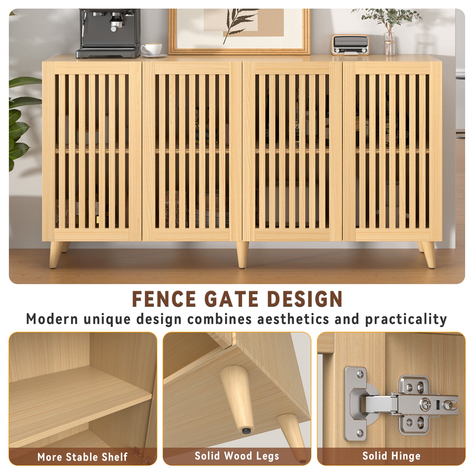 Save 50% - 63" Mid-Century Modern Buffet Cabinet with Storage, 4-Door Wood Sideboard Credenza with Legs for Living Room, Entryway & Hallway