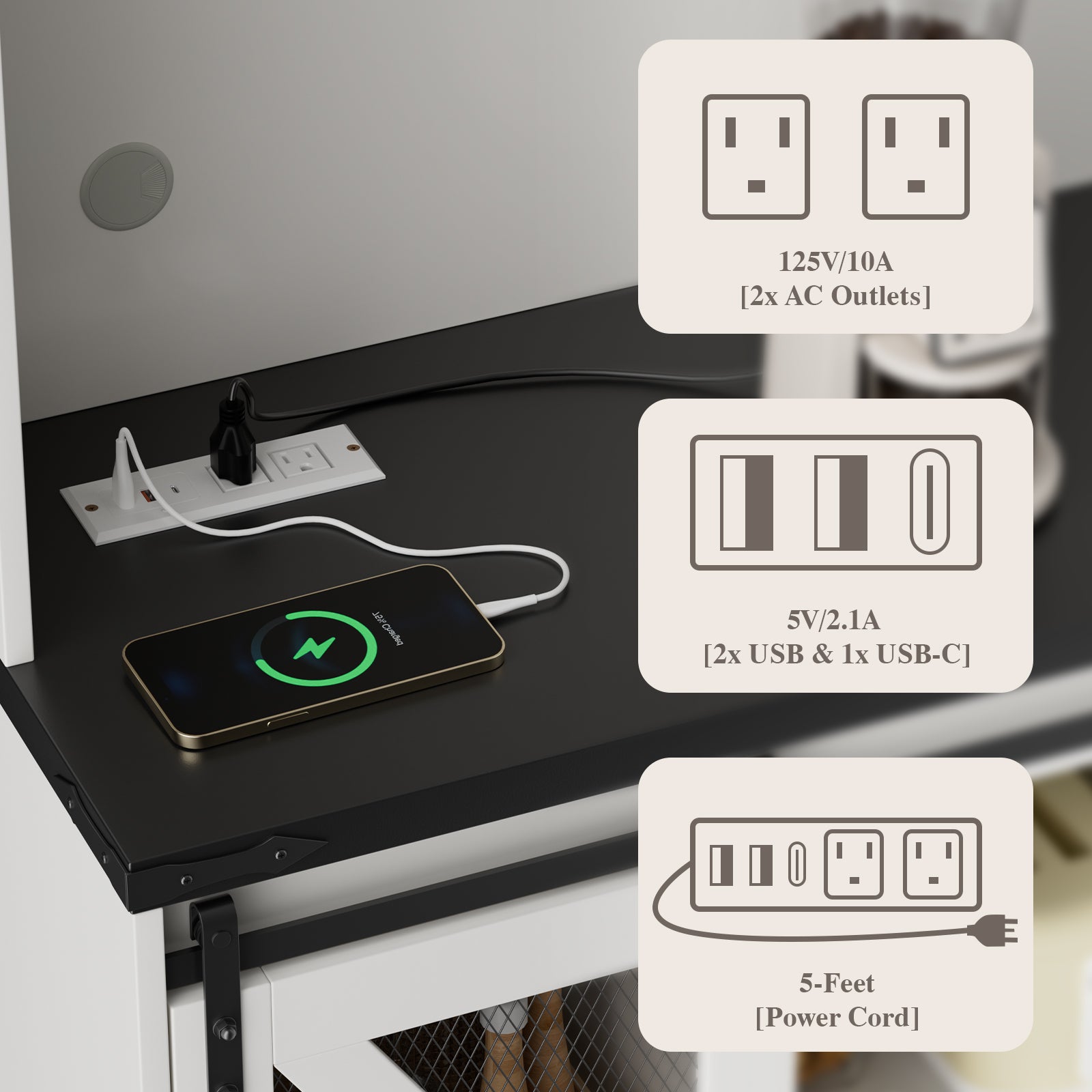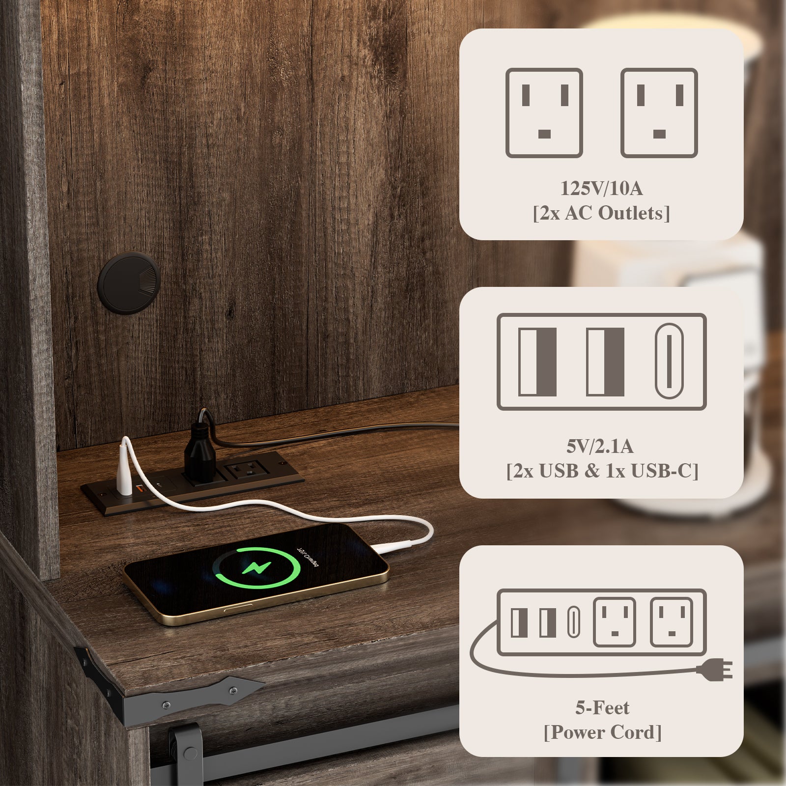 2. Built-in Charging Station: Features 2 USB ports and 2 three-prong outlets, allowing you to power small appliances and charge devices like phones and tablets directly from the cabinet.