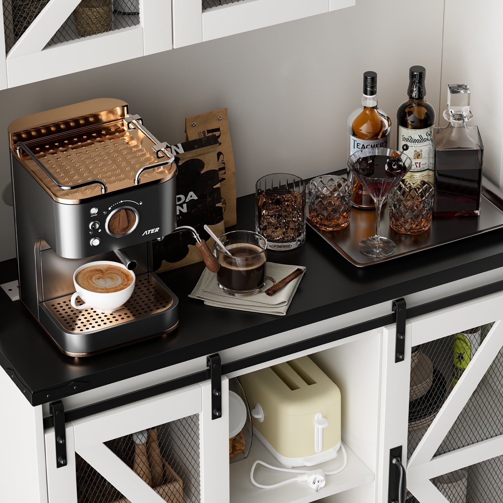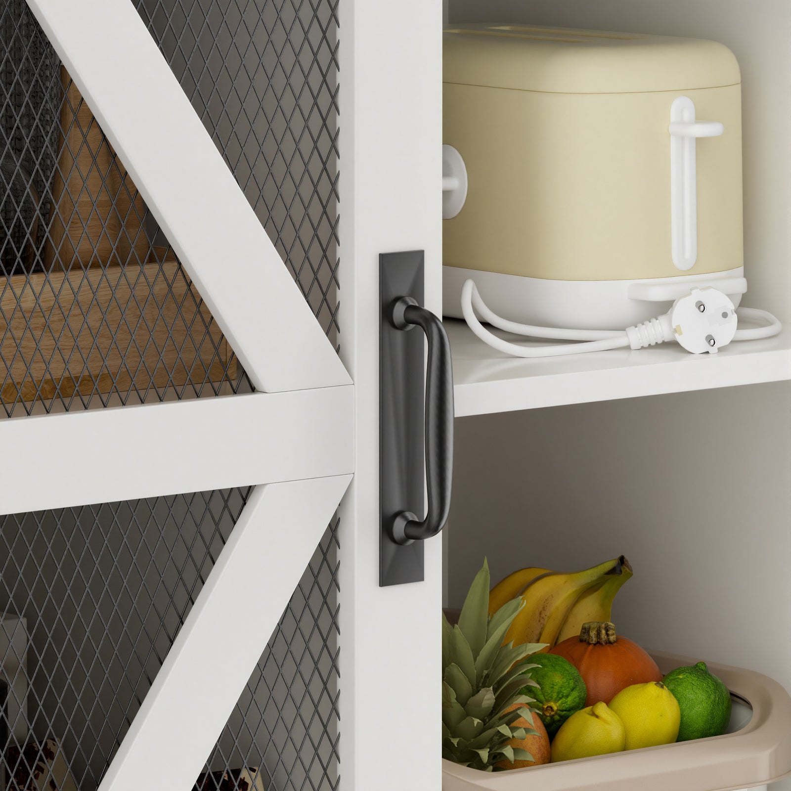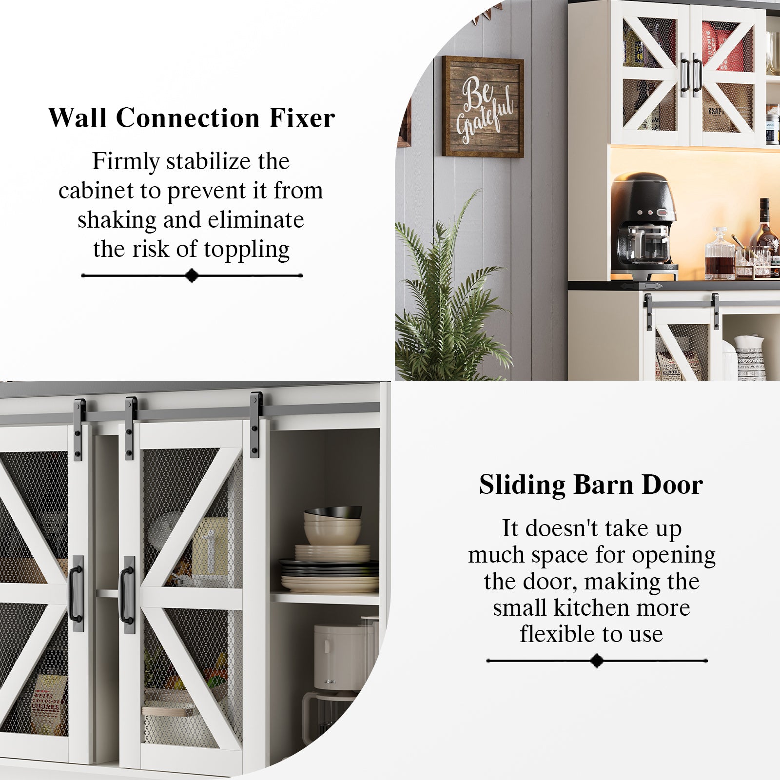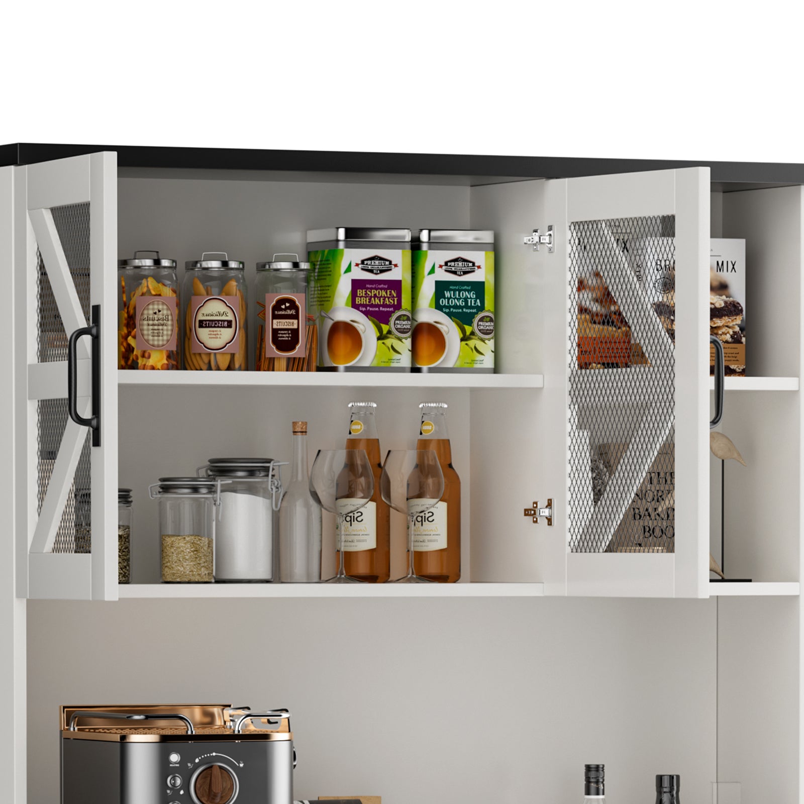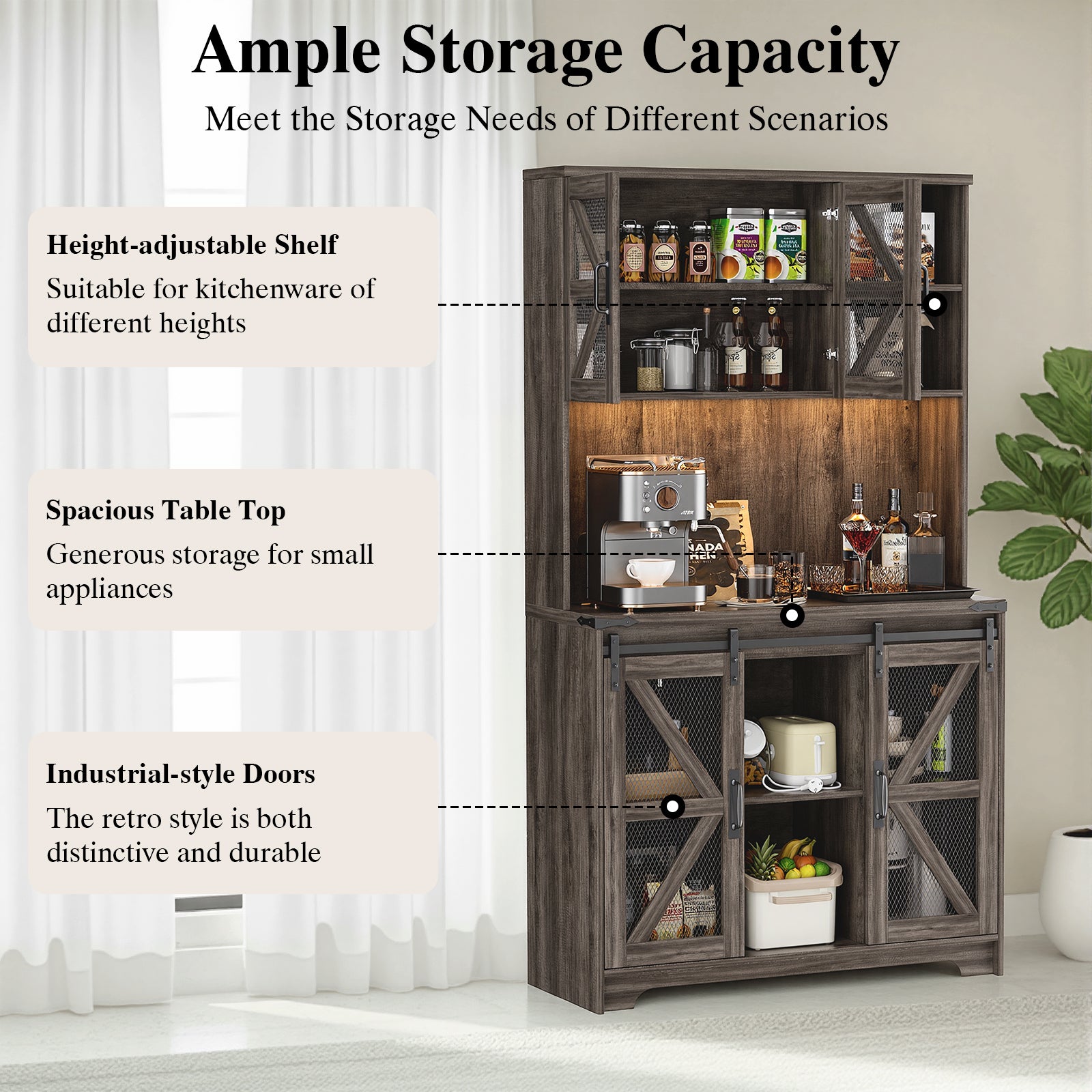 3. Large-Capacity Storage: Designed with open shelves, a spacious countertop, and barn-door cabinets to accommodate microwaves, coffee makers, kitchen utensils, containers, and more. Overall size: 15.35"D × 39.37"W × 70.87"H.