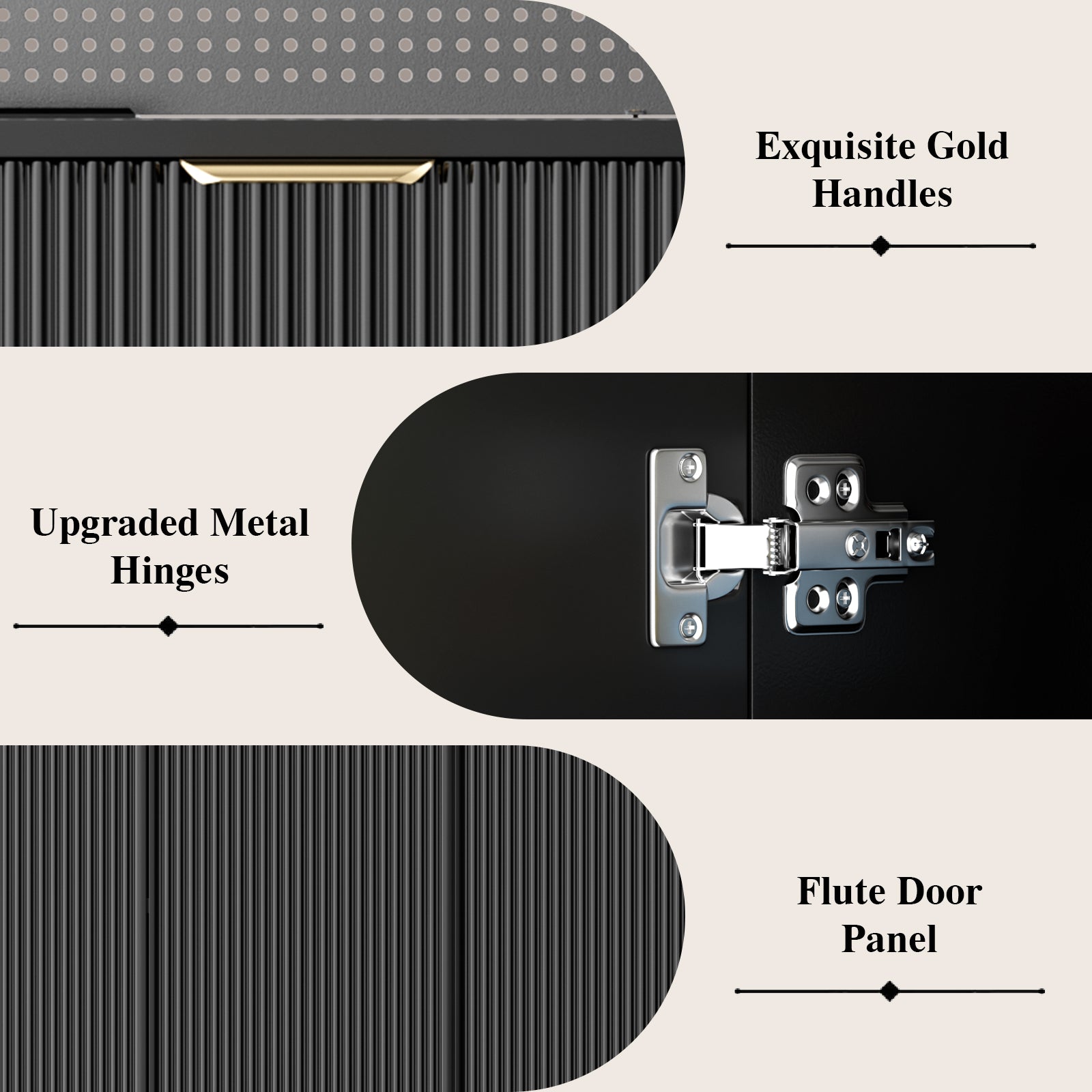 3. Smart Storage Layout: At 71" tall, 39.37" wide, and 15.35" deep, this cabinet includes 2 drawers, adjustable shelves, and a combination of open and closed storage spaces. The sliding top door with a wave pattern enhances both style and practicality.