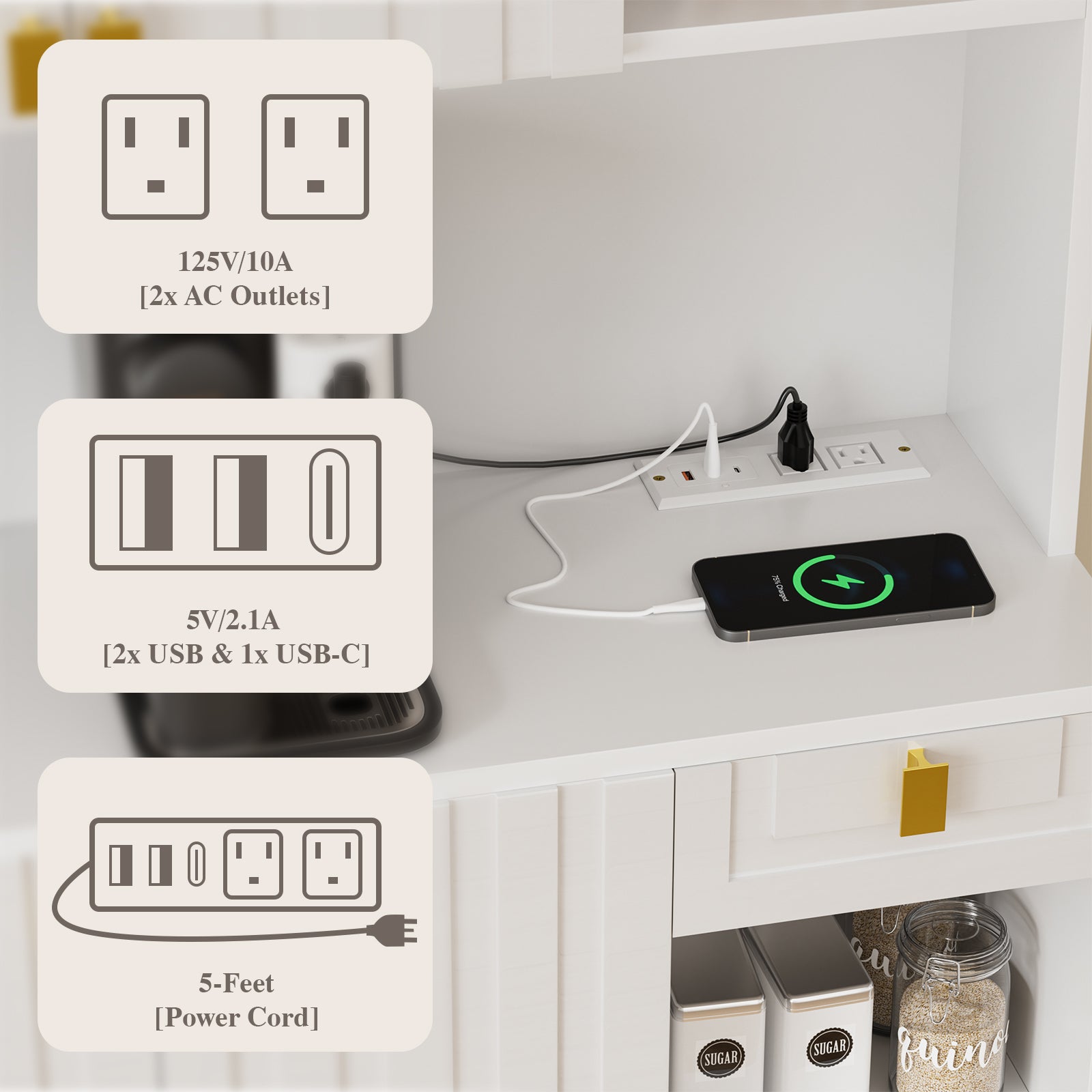 5. Built-in Charging Station: Equipped with 2 AC outlets, 1 USB port, and 1 Type-C port, giving you convenient access to power for kitchen appliances and devices—no extra wall outlet needed.
