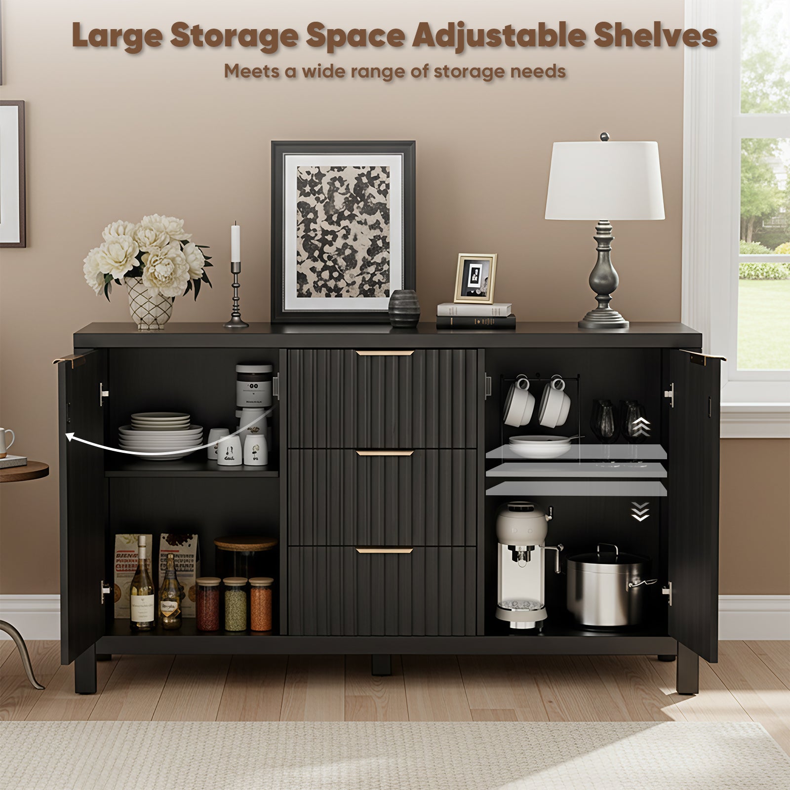 Save 50% - Fluted Sideboard Buffet Cabinet with Storage, 2 Doors & 3 Drawers, Adjustable Shelf Accent Credenza for Living Room or Entryway