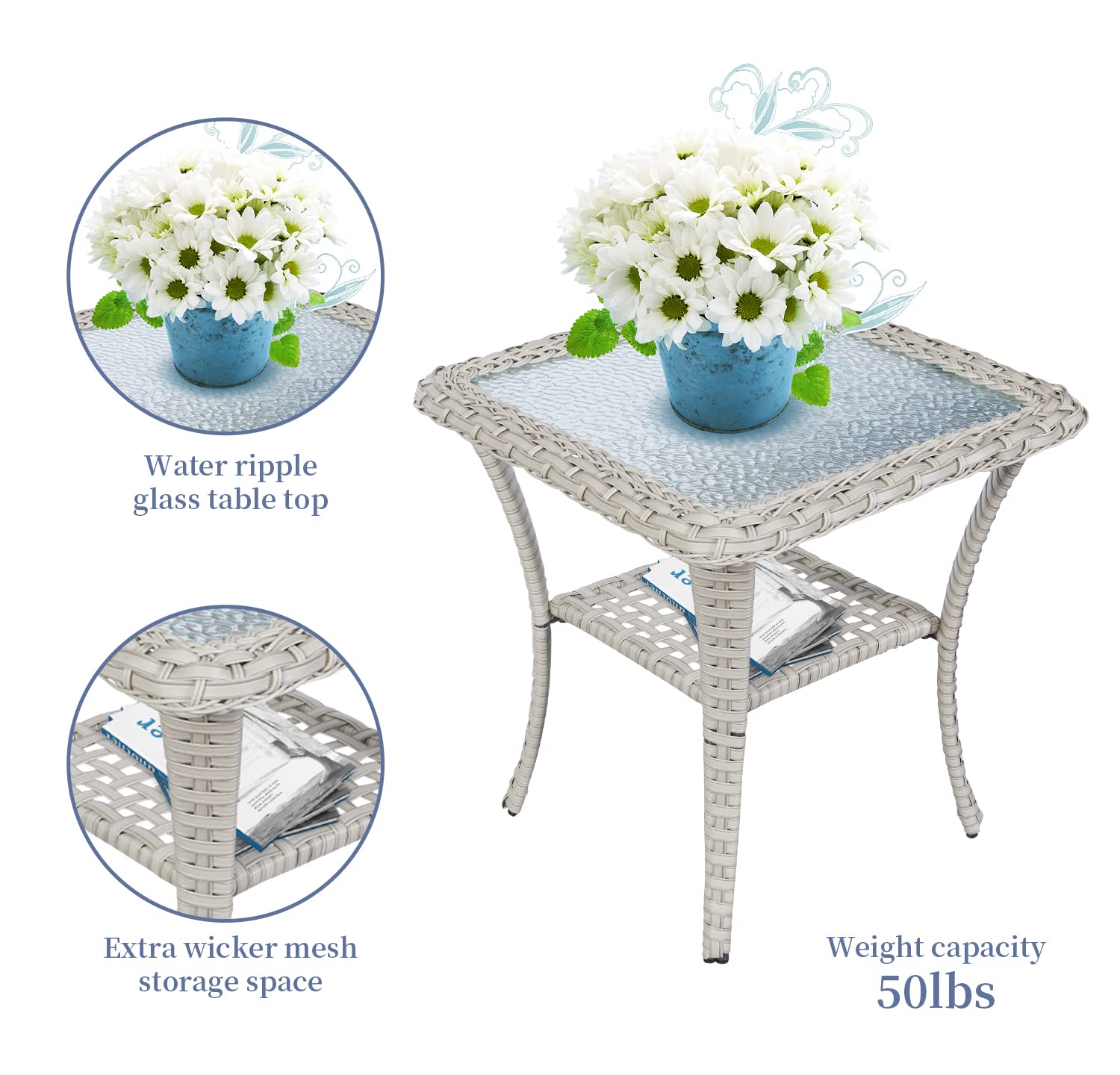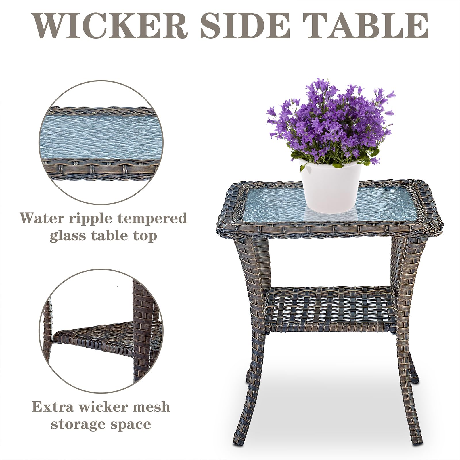 Side Table: PE Wicker & Steel Frame & Tempered Glass